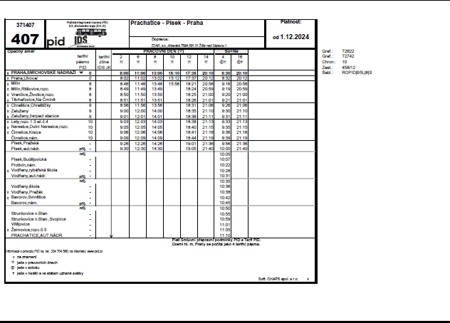 Nové jízdní řády autobusových linek PID č. 407, 416 a 428 jedoucích z Prahy směrem na Milín, Zalužany, Čimelice a dále do Jihočeského a Plzeňského kraje.